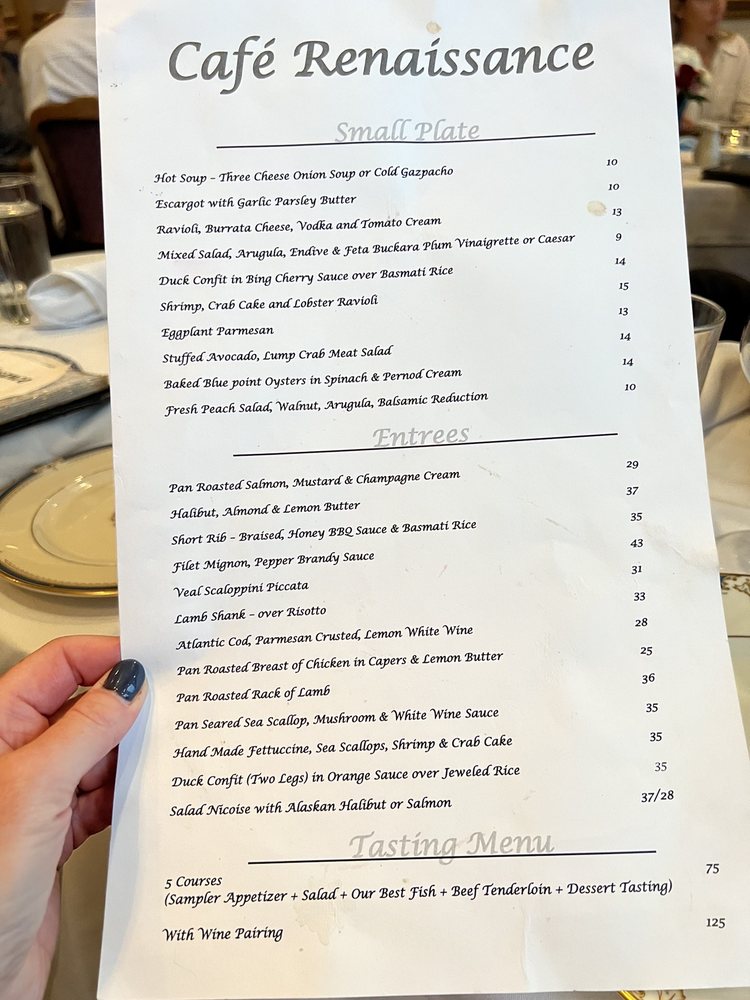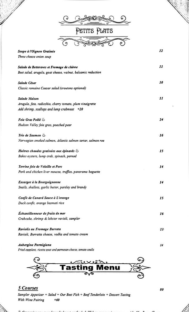 Introducing the menu at Cafe Renaissance, a French-Seafood-Italian establishment in Vienna, VA, known for its upscale and romantic atmosphere. Offering a variety of vegan and vegetarian options, this restaurant is perfect for special occasions. The extensive wine list includes options from American and French regions, enhancing the dining experience. Customers praise the high-quality dishes, such as the French onion soup, escargot, and chicken with mushroom sauce. The attentive service and cozy ambiance make guests feel truly special. With offerings like flaming desserts and signature cocktails, Cafe Renaissance delivers a unique and memorable fine dining experience. Whether it's a date night or a celebration, this restaurant's attention to detail and delicious food will leave a lasting impression.